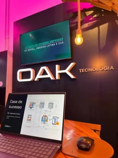Como patrocinadora oficial e expositora, a Oak esteve presente para agregar e viver de perto essa atmosfera. Nosso estande foi pensado para receber visitantes, gerar conversas e apresentar nossa metodologia e soluções, mostrando na prática como cocriamos com empresas para transformar ideias em resultados. Um espaço que se tornou ponto de encontro para quem buscava eficiência, escalabilidade e iniciativas capazes de gerar impacto real.